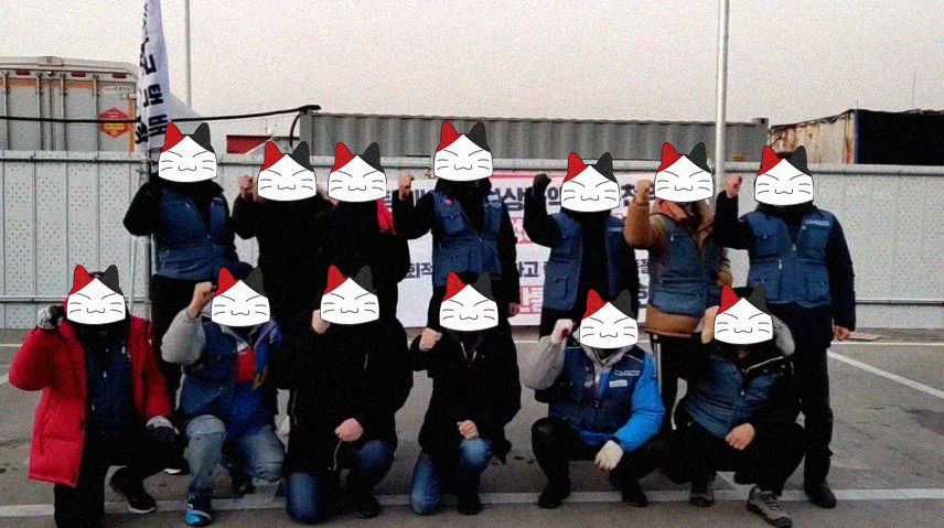 2022년 새해의 첫날, 1월 1일, 우리 말랑키즘은 현재 진행되고 있는 CJ 택배 노조의 총파업과 연대하기 위해 CJ대한통운 인천지사의 파업 현장을 방문했다. 이곳에 노동자들은 한겨울 인천 바닷가 추위를 피해 창고 한쪽에서 전기난로 주변에서 물품을 지키고 있었다.