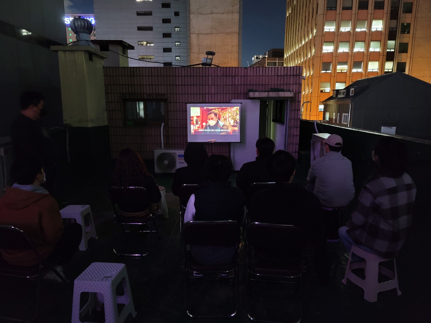당일 세종호텔 해고 철회를 위한 투쟁 문화제를 마친 뒤 말랑키즘 정회원을 비롯해 그간 코로나로 인해 얼굴을 마주하기 힘들었던 동지들, 아울러 세종호텔지부 동지들과 함께 말랑키즘 사무실로 향했다. 그곳에서 예고했던 것처럼 유튜브 채널 '스튜디오 R'의 세종호텔 투쟁에 관한 영상 시리즈를 함께 시청했다. 스튜디오 R의 훌륭한 영상 덕분에 급히 마련한 상영회임에도 불구, 비교적 그럴싸한 모습을 갖출 수 있던 점에 이 자리를 빌어 다시금 스튜디오 R 동지들에 깊은 감사의 인사를 전한다.